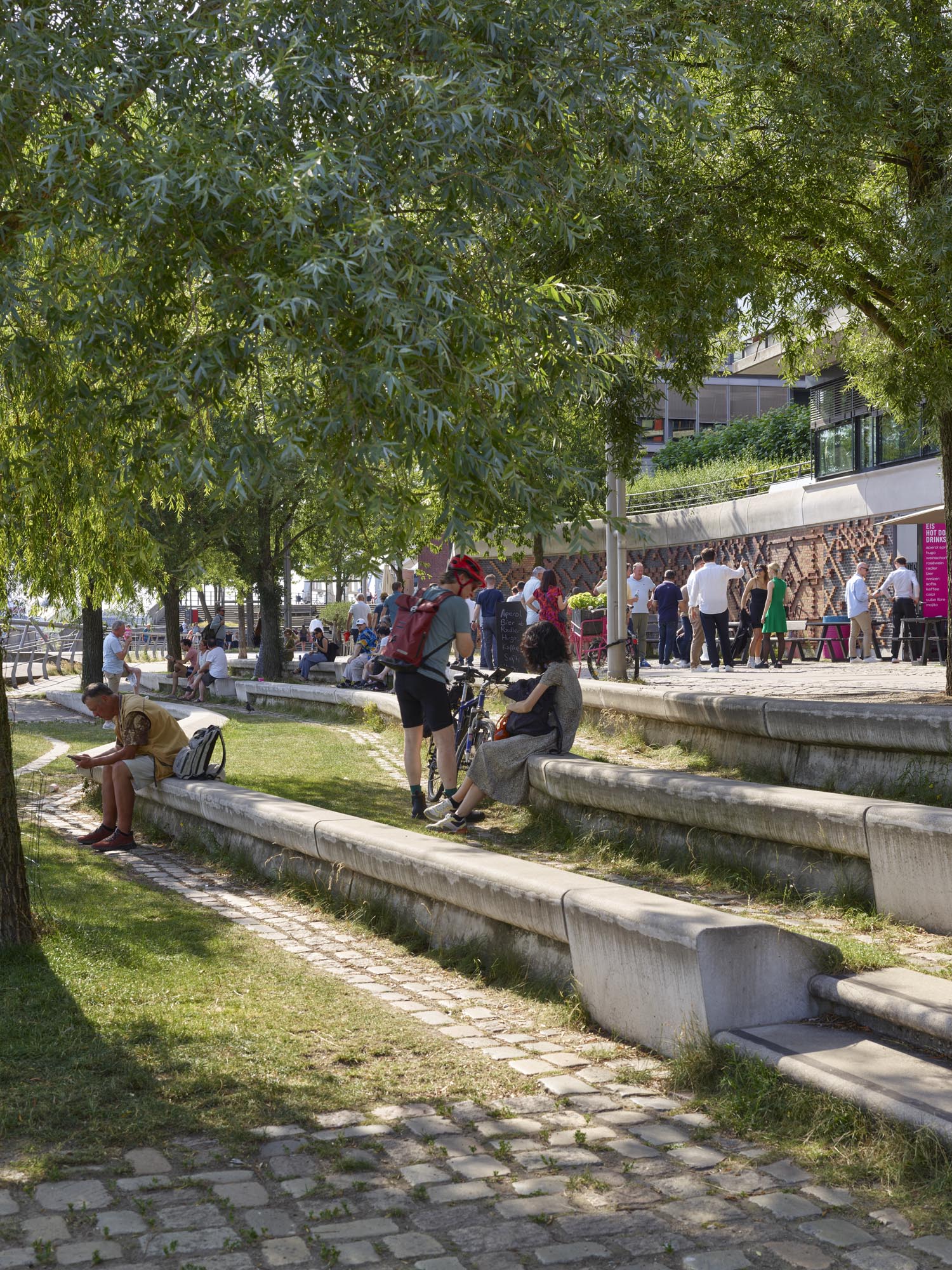 The Dalmannkai Treppen; a series of stairs and stepped platforms, embody the project’s philosophy of bringing people closer to the water while negotiating the difference between flood levels. Their sequence of landings, ramps, and viewpoints connects the upper streets, the promenade, and the mooring level. The tactile robustness of brick klinker and prefabricated stone contrasts with the softness of planted areas, introducing a human scale to the large harbor structures. Both circulation and leisure space, the Treppen represent HafenCity’s approach to resilience: accessible, adaptable, and inviting.