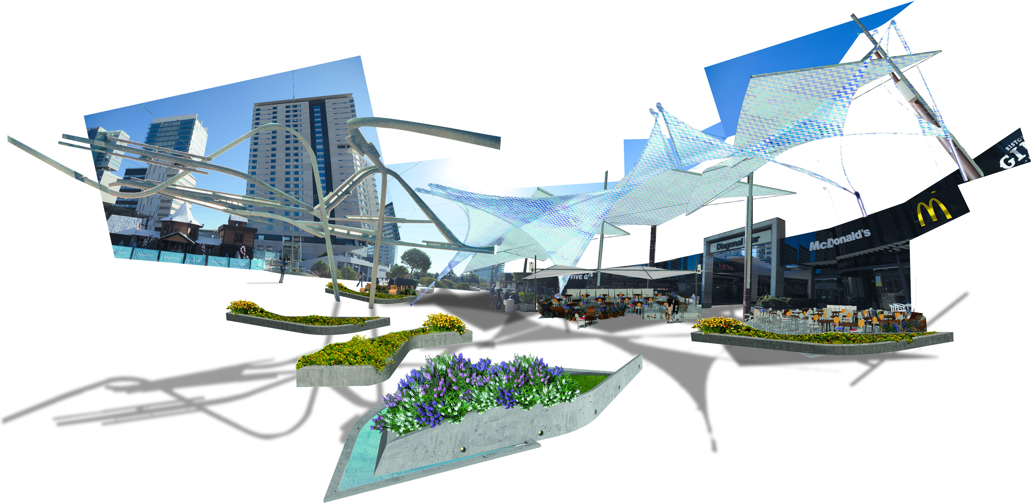 The Diagonal Mar Shopping Center’s plaza and terrace redesign project is situated in a strategic location in Barcelona, nestled between the Diagonal Mar Park and Parc del Forum. The renovation aims to create a strong connection with these large public spaces, functioning as an extension of them on a smaller scale. The plaza’s design features colorful pavements inspired by the richness of the sea, with a pattern resembling an open shell revealing a pearl. The terrazzo-like floor reflects the natural beauty of the sea, and the integration of holographic fish figures adds a magical, immersive quality. Additionally, the pergolas draw inspiration from the concept of water surfaces and are designed to reflect light, creating an ethereal, dynamic space. The project offers a vibrant space where nature and the urban environment come together, providing a new kind of public space that promotes interaction with the surroundings.