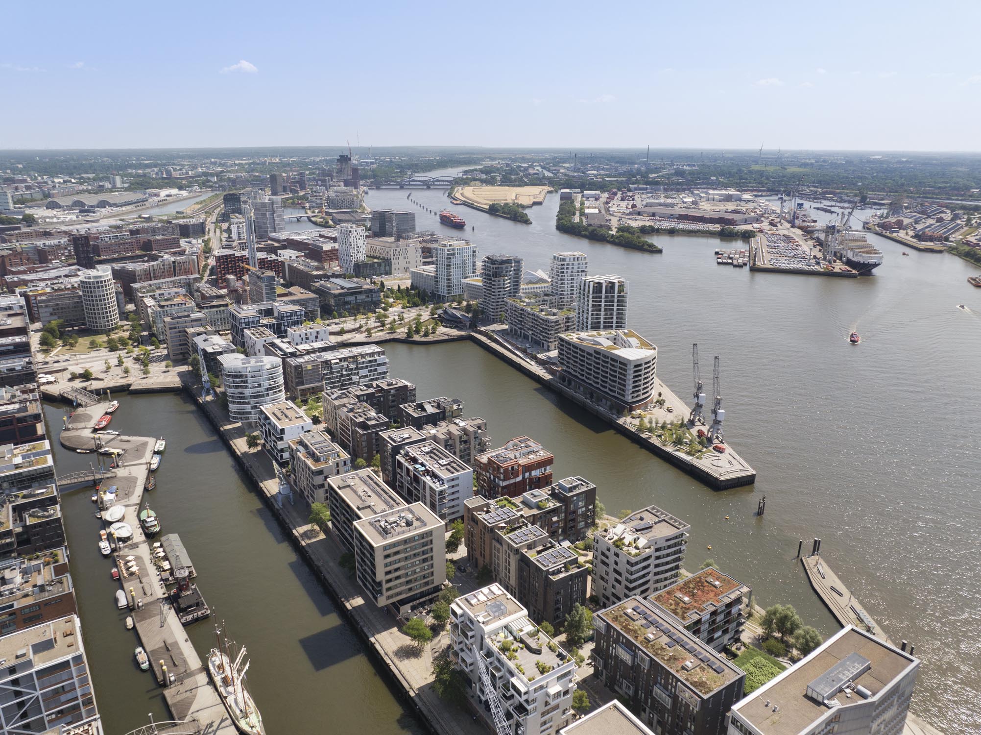 Rather than resisting the Elbe’s tides, the design embraces periodic flooding—two thirds of the public spaces are floodable—turning the phenomenon into an experience and a tool for climate resilience. The material palette reinterprets HafenCity’s port identity with brick klinker walls (Warftwände) and prefabricated stone elements, while native vegetation—oaks, willows, ashes, and grasses—introduces a changing seasonal atmosphere. The result is a network of urban places—plazas, terraces, parks, stairs, and alleys (Gassen)—that weave together city and harbor, tradition and innovation, creating a resilient and poetic urban landscape for Hamburg’s future waterfront.