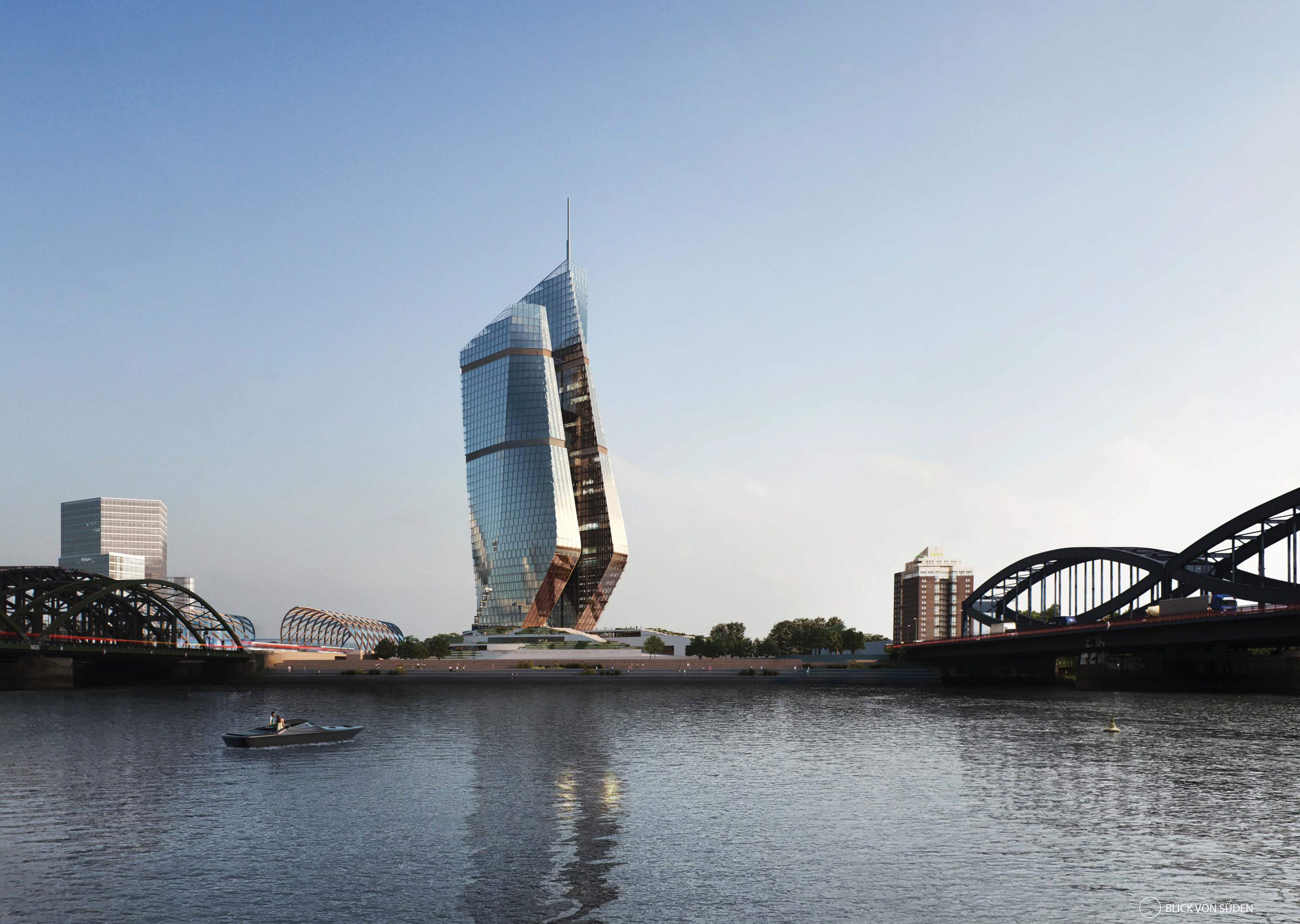The landscape design for the Elbtower creates a sculptural and civic base for Hamburg’s future landmark. Inspired by the metaphor of the tower as a wind-filled sail, we project invisible aerodynamic forces onto the ground, generating a fluid system of lines that structure the public space. These lines, reminiscent of boat wakes and wind currents, define a stratified material pattern made of molded concrete and colored asphalt. The design integrates ramps, promenades, staircases, terraces, and seating steps that rise to meet the tower, transforming the basement rooftops into an active public plaza. An artistic pavement motif celebrates Hamburg’s harbor legacy by depicting iconic silhouettes-Michel, Elbphilharmonie, Elbtower-along boat trajectories on the Elbe, visible from the tower and S-Bahn line. The landscape becomes a place of transition and discovery, offering different atmospheres through gardens, wood decks, water features, and green spaces. Panoramic viewpoints and layered programs reinforce the Elbtower’s role as a symbolic gateway to the city and a catalyst for Hafencity’s urban development.