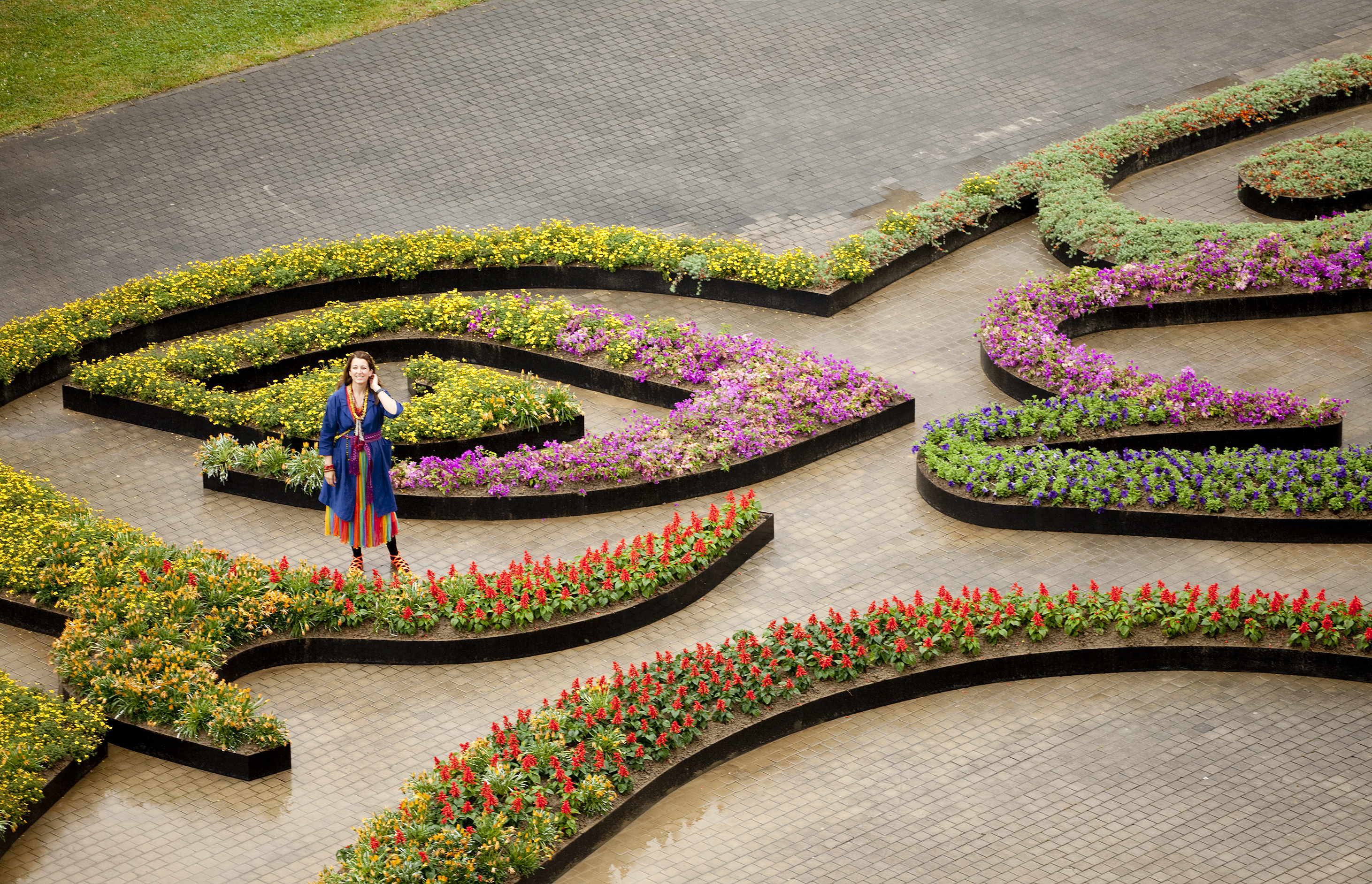 The installation appeared from a distance as a colorful rabbit, visible from the Puente de La Salve, creating a visual dialogue with Jeff Koons’ “Puppy” and Louise Bourgeois’ “Spider.” The design sought to reproduce the atmospheric quality of Chinese landscape paintings through an artificial yet natural-feeling setting.