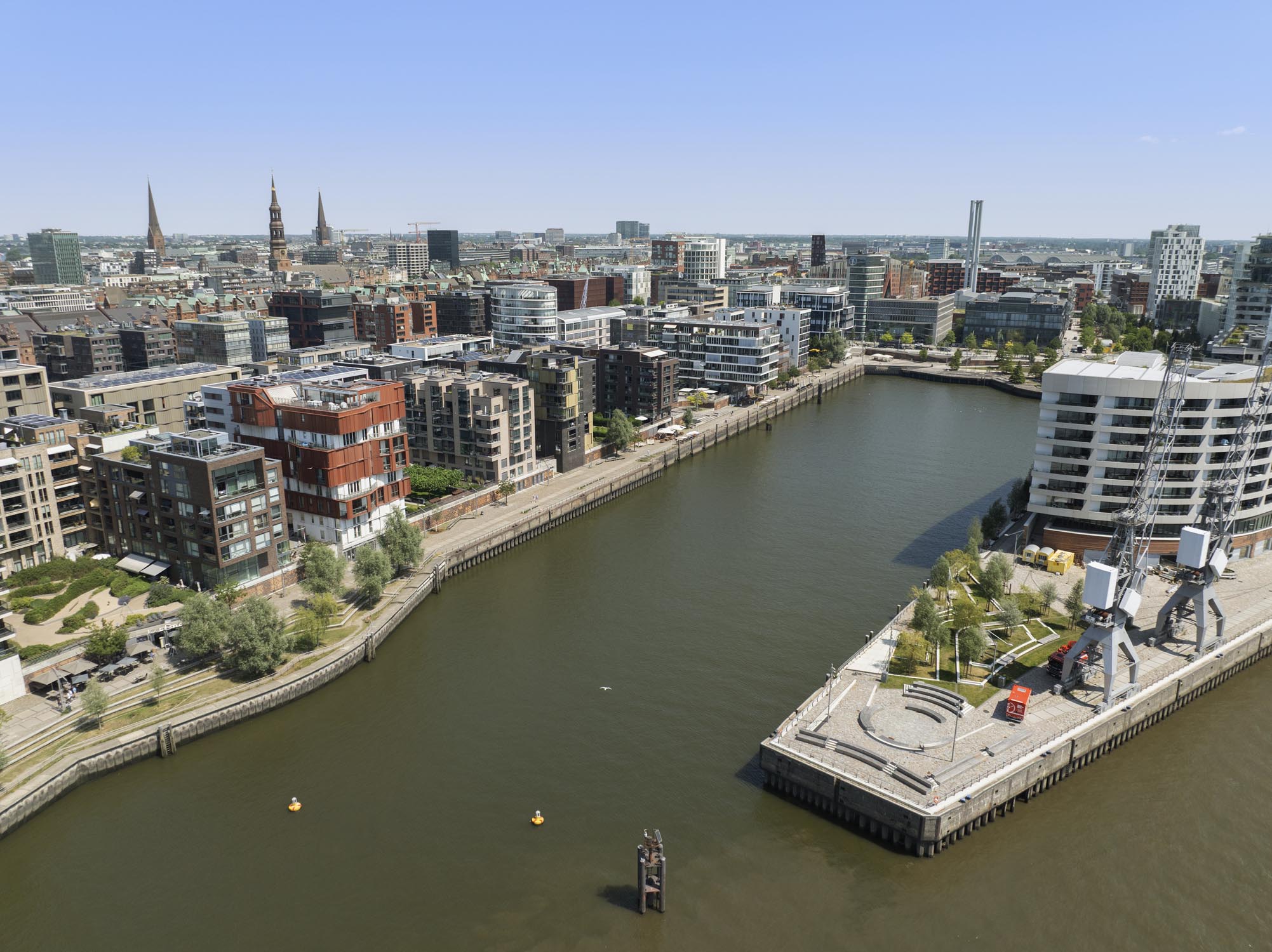 The Platz Strandhöft marks the tip of the Strandkai peninsula in the western HafenCity, offering sweeping views over the Elbphilharmonie and the Elbe River. Developed as part of the public space ensemble by EMBT, the plaza sits between the Elbe and the Grasbrookhafen, and features two historic harbour cranes, approximately 50 trees and an open-air stage for cultural events. The layout integrates accessible promenades and folding level changes: the dynamic terrain both invites gathering and responds to tidal influences, reinforcing the harbour-city interface with a new civic belvedere.