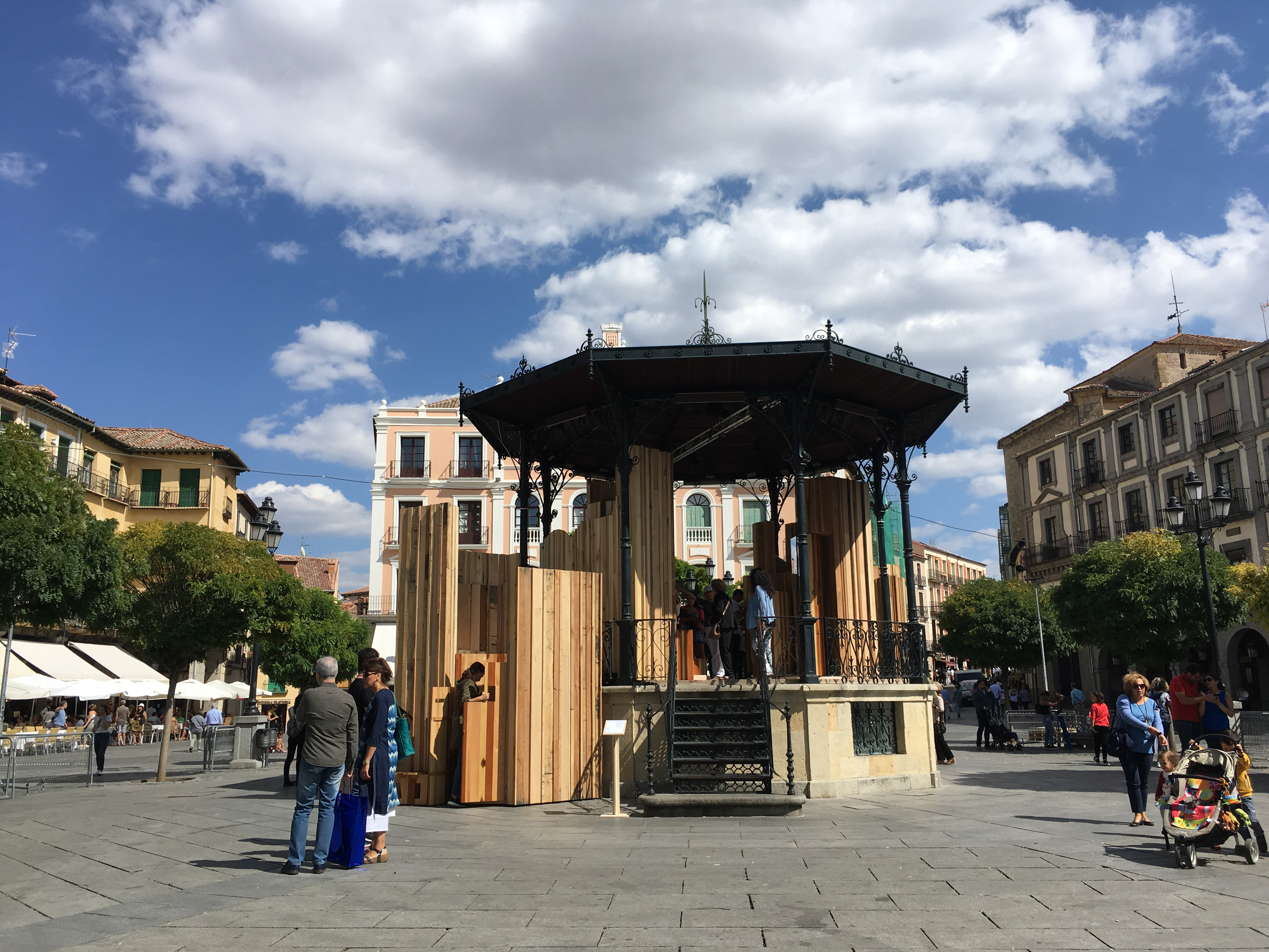 Set within the historic bandstand at the Plaza Mayor of Segovia, the installation invites visitors to inhabit and play with the pieces, highlighting the transition from raw timber to refined craftsmanship. The project advocates for a broader use of lesser-known wood species and questions aesthetic biases in material selection. Emphasizing the value of natural imperfections and sustainable resource management, Too Good to Waste promotes a poetic and responsible approach to material design, blending architecture, craftsmanship, and environmental awareness.
